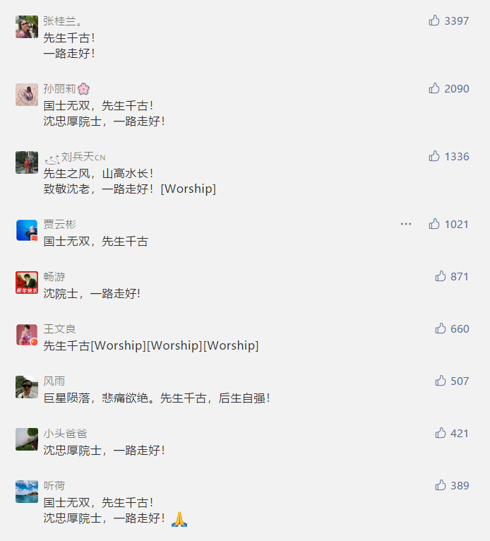 沈忠厚院士逝世后,社會各界人士、廣大師生校友表達了對他的沉痛悼念和深切緬懷。人民日報、新華社、光明日報等多家中央媒體和社會媒體報道了相關消息,廣大網友紛紛留言,表達敬意與懷念。