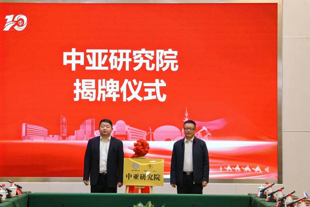在“中亞研究院”揭牌儀式上,上海外國語大學副校長林學雷與邢曉凱共同為研究院揭牌。該研究院由兩校共建,旨在服務“一帶一路”倡議,深化對中亞地區的研究,為促進教育合作與人文交流提供智力支持。