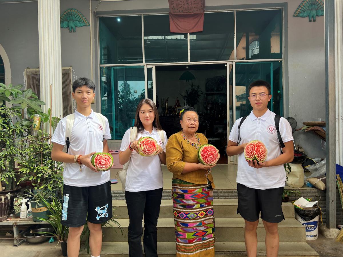 在傣族村寨,團隊成員向非遺傳承人學習果雕技藝,一把小刀、一雙巧手,普普通通的瓜果,就能在她手中變幻成栩栩如生的花朵與鳥雀;
