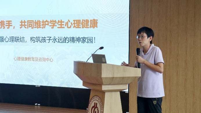 在心理健康培訓(xùn)活動中,學(xué)院邀請了心理健康教育及咨詢中心主任鄧聽圍繞新生步入大學(xué)可能會遇到的挑戰(zhàn)、家長對學(xué)生心理健康的關(guān)心關(guān)注方式及學(xué)生遇到困難家長如何應(yīng)對等方面開展培訓(xùn)。