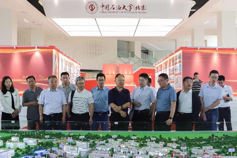 交流期間,尚鎖貴及萬歡一行實地參觀了學校辦學成就展、校園全景沙盤、F4實習實訓廠房、圖書館和紅山湖,并前往石油學院開展技術交流。