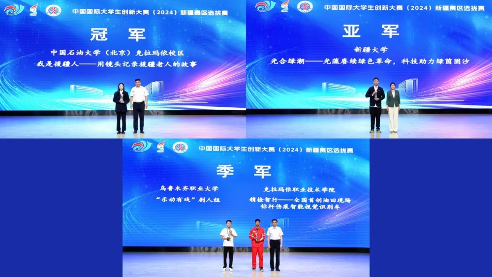 校區參賽項目“我是援疆人——用鏡頭記錄援疆老人的故事”獲得冠軍,新疆大學參賽項目“光合綠潮——光藻賡續綠色革命,科技助力綠茵固沙”獲得亞軍,烏魯木齊職業大學參賽項目“‘樂動有戲’劇人組”和克拉瑪依職業技術學院參賽項目“精檢智行——全國首創油田現場鉆桿傷痕智能視覺識別車”獲得季軍。