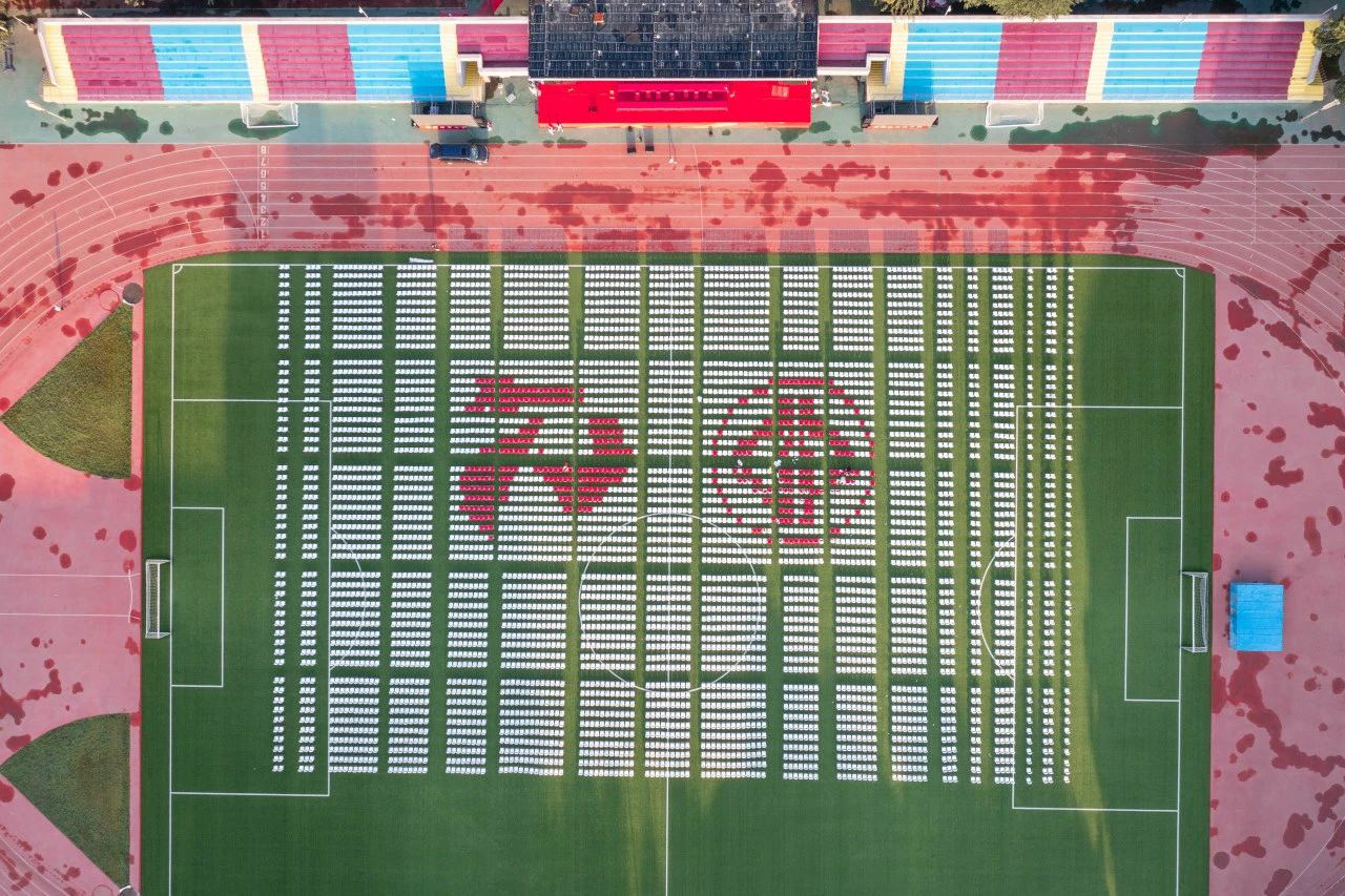 紅旗操場主席臺上,寫有校風(fēng)“實事求是、艱苦奮斗”、校訓(xùn)“厚積薄發(fā)、開物成務(wù)”的背景板格外醒目,主席臺兩側(cè)的大屏上播放著校園風(fēng)光和新生報到的視頻。典禮現(xiàn)場,2023級新生容光煥發(fā),整齊就坐,座椅擺出校徽和“70”的造型,現(xiàn)場氛圍濃厚熱烈。