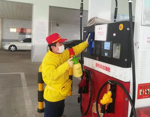 昌平站于1月22日接到內保通知,要求站內工作人員必須佩戴口罩服務,公司立刻意識到疫情的嚴重性,第一時間采取防控措施通過多方渠道購買口罩、消毒液、酒精棉等防護用品保障了加油站內的消毒防護需求。