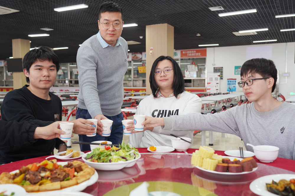 2月9日除夕,學校為留校師生準備了豐盛的年夜飯,鮑志東同留校中外學生、堅守崗位的師生員工共同慶祝新春佳節(jié)。他代表學校向留校師生及其家人致以誠摯的問候,對值班工作人員的辛勤付出表示衷心的感謝,并送上新春的美好祝福。要求各級值班人員要堅守崗位,嚴格做好值班值守及校園安全穩(wěn)定工作,希望留校學生合理安排假期的學習、生活,為即將到來的新學期做好充分準備,過一個安全、充實、有意義的快樂假期。