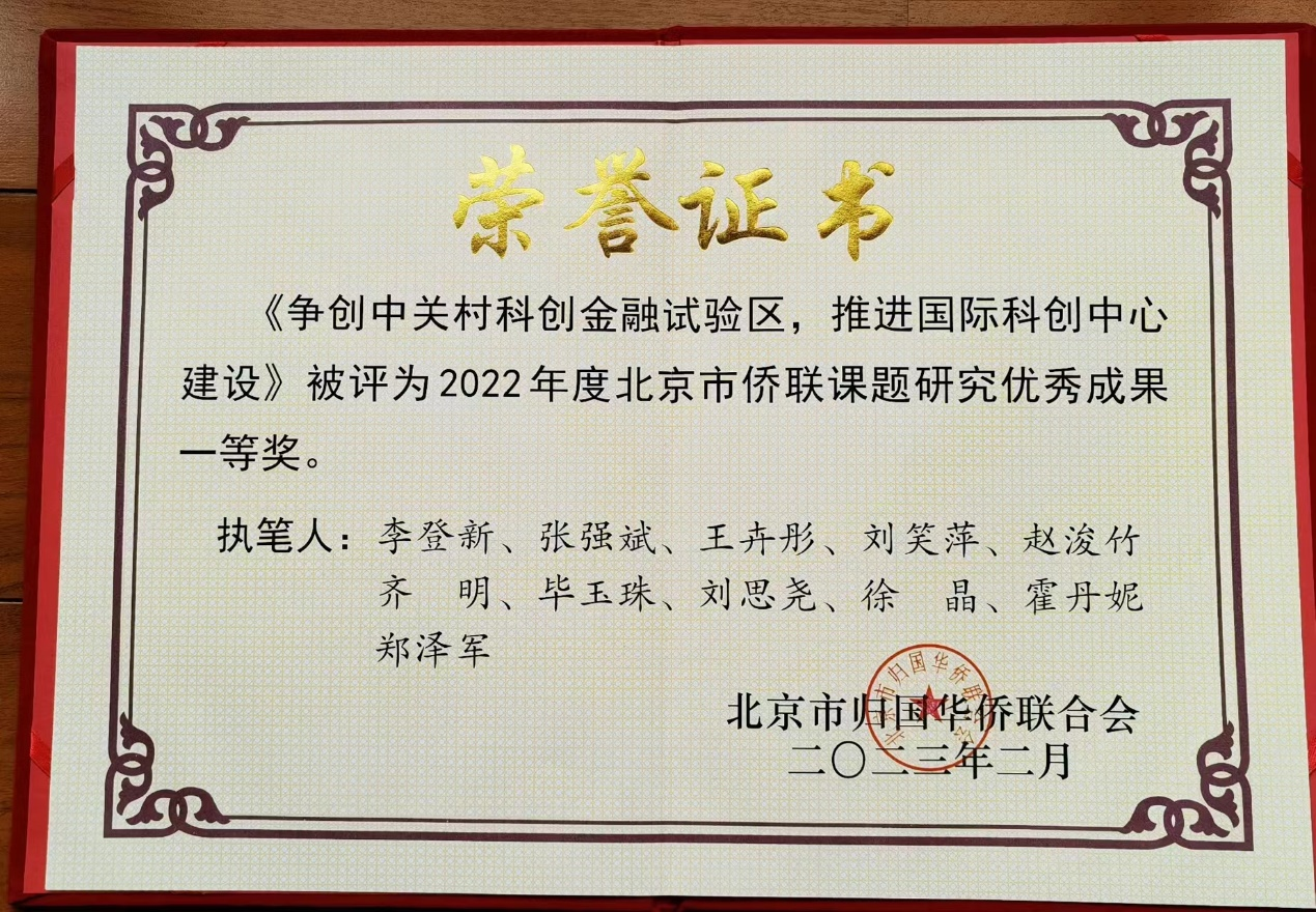 中國石油大學歸國教師、致公黨黨員張強斌、齊明等參與執筆的《爭創中關村科創金融試驗區,推進國際科創中心建設》,獲得2022年度北京市僑聯課題研究優秀成果一等獎;齊明、張強斌、鄭仕敏、賴達富、劉一凝等執筆的研究報告《積極推進城市副中心高質量發展》,獲得2022年度北京市僑聯課題研究優秀成果三等獎。