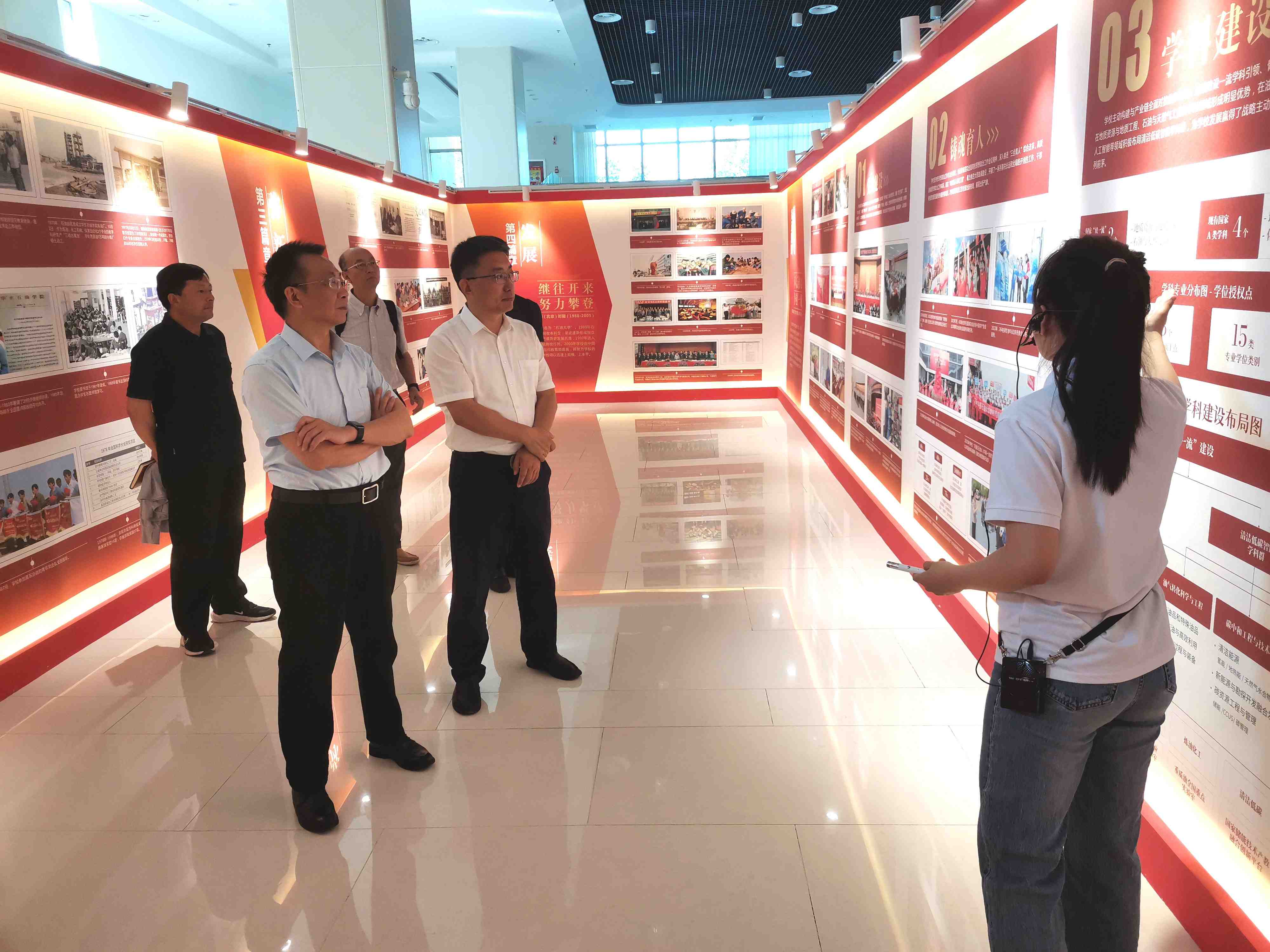 調研期間,曹友誼一行實地參觀了學校辦學成就展、校園全景沙盤和紅山湖。