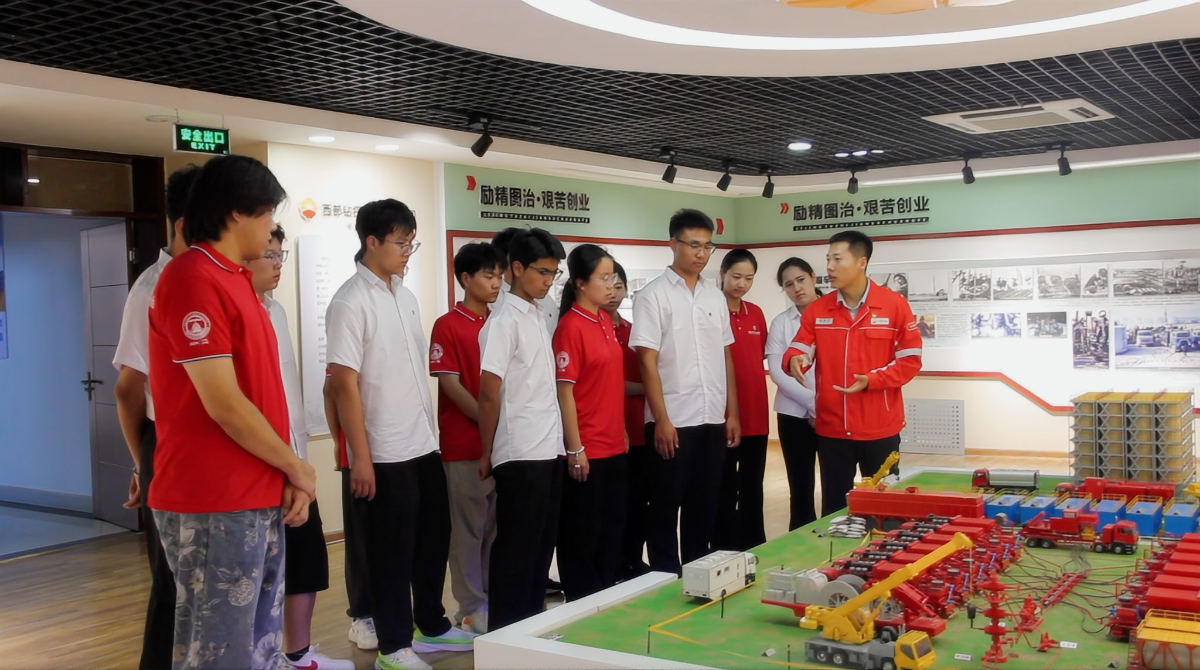 從獨(dú)山子到克拉瑪依,實(shí)踐團(tuán)的足跡串聯(lián)起一部立體的西陲石油史。在獨(dú)山子展覽館,銹紅色的鋼結(jié)構(gòu)外墻模擬鉆井塔架、“創(chuàng)業(yè)歲月”展區(qū)內(nèi)泛黃的《獨(dú)山子油礦初期勘探報(bào)告》手稿、1951年蘇聯(lián)援建的蒸餾釜?dú)埣腿死缈高\(yùn)鉆具的黑白照片等,生動(dòng)再現(xiàn)了70多年前戈壁荒灘的創(chuàng)業(yè)場(chǎng)景。“這些實(shí)物不僅是歷史見(jiàn)證,更是一代代石油人精神的詮釋。”實(shí)踐團(tuán)感悟道。