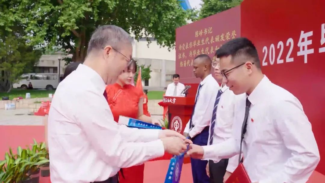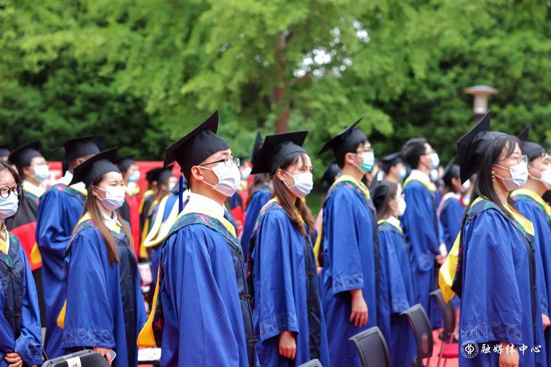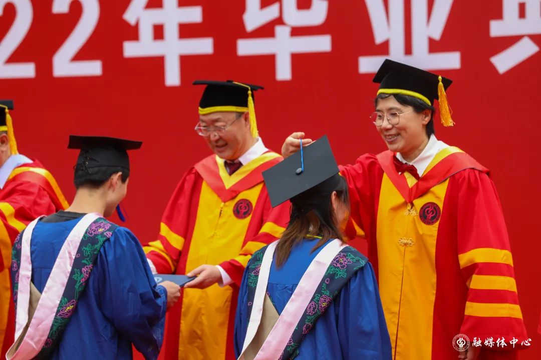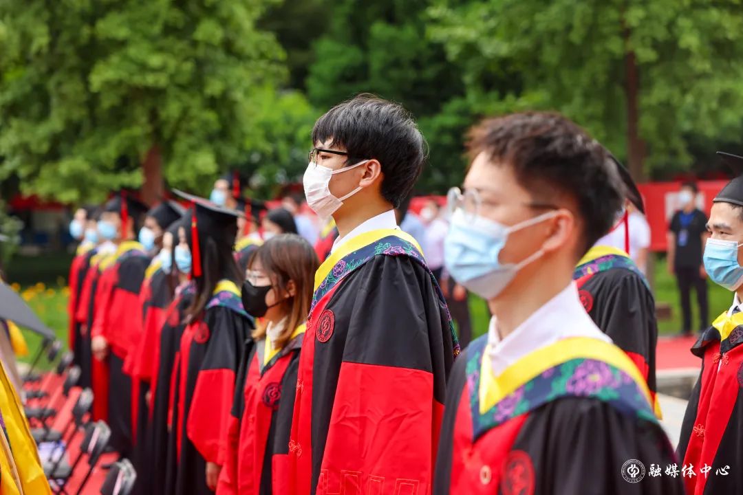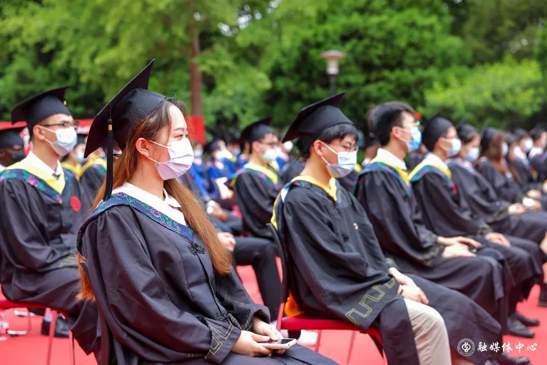 典禮主會場校本部青年園綠草如茵、紅毯奪目、旗幟飄揚,氛圍熱烈而隆重。2022屆在校的畢業生代表與師長們在現場共襄慶典,已離校的5000多名博士、碩士和本科畢業生通過“云端”參加典禮,共同接受母校和師長的祝賀與祝福。