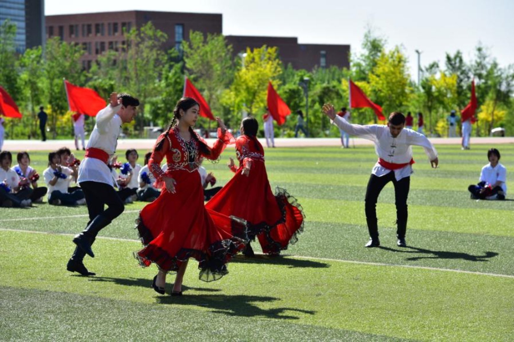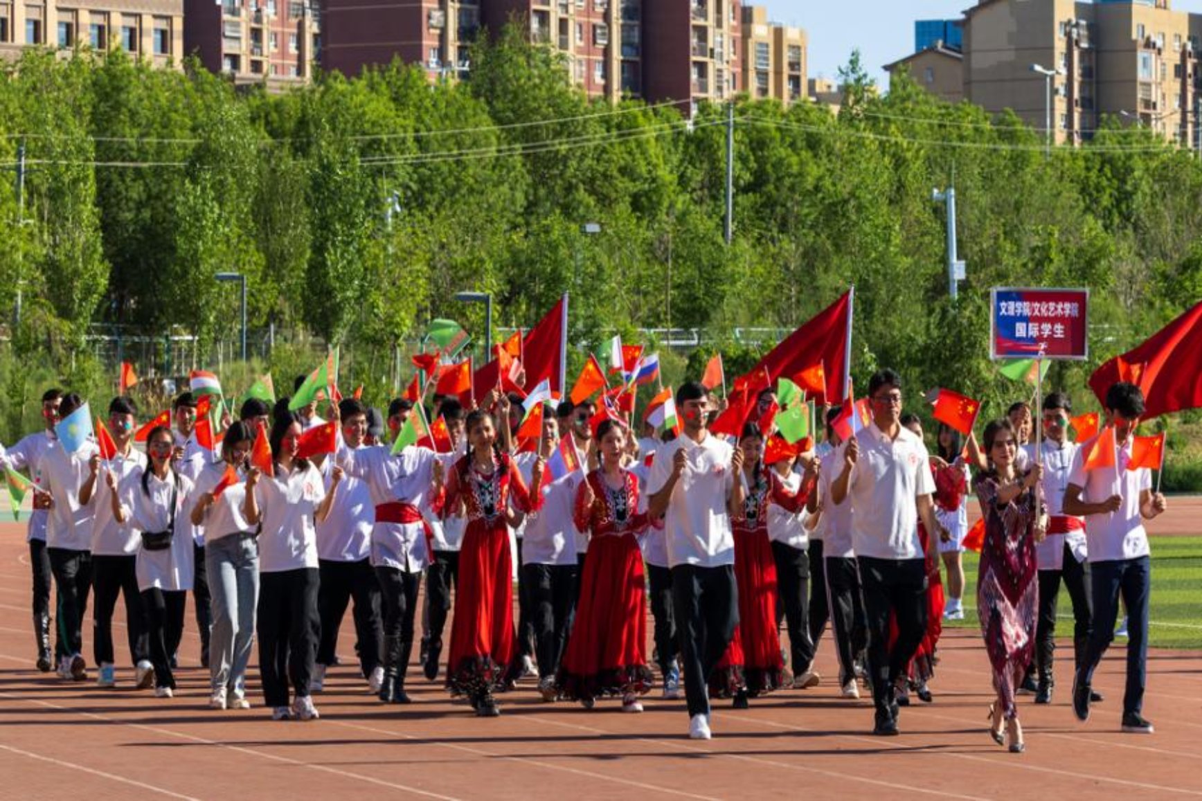留學生方陣充分展現了“一帶一路”沿線國家的多元文化。留學生代表們身著不同風格的民族服飾步入會場,熱情地向現場觀眾揮手互動。來自土庫曼斯坦、塔吉克斯坦、哈薩克斯坦等11個國家的40余名留學生參加了開幕式及各項比賽。他們身著不同風格的民族服飾步入會場,表演了特色民族舞蹈,展現了“一帶一路”沿線國家的文化,成為紅旗操場上一道青春和友誼的風景線。