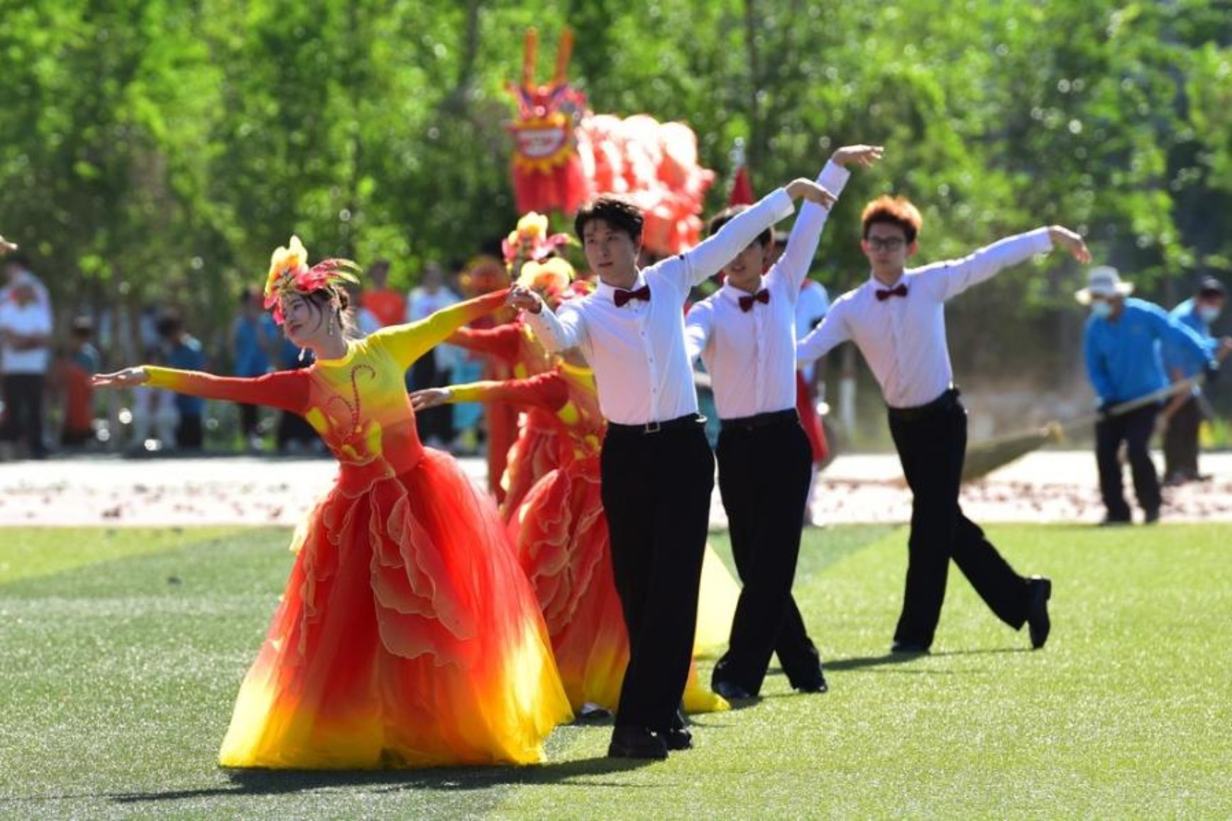 1200余名師合力呈現了精彩的開幕式表演。行云流水的太極拳、青春動感的健美操、氣勢昂揚的跆拳道、優雅輕盈的華爾茲……表演團隊帶來了體育教學成果節目匯演《少年中國 逐夢未來》。克拉瑪依市第二中學舞龍舞獅隊受邀參與表演,鑼鼓陣陣、龍隨鼓起,隊員們用青春展現了中國傳統文化的獨特魅力。