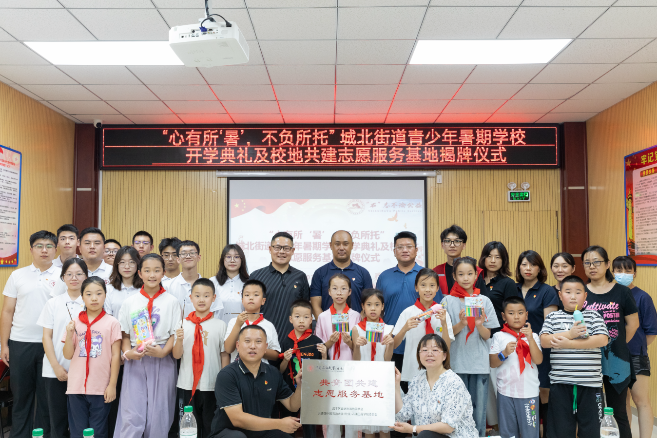 8月12日上午,“心有所‘暑’,不負所托”昌平區城北街道青少年暑期學校開學典禮及校地共建志愿服務基地揭牌儀式在城北街道怡園社區舉行。城北街道黨工委副書記趙國宇、怡園社區黨總支書記趙志鵬,城北街道、怡園社區工作人員,中國石油大學(北京)石油工程學院學生工作負責人、“石”志不渝社會實踐團、“鐵人先鋒”社會實踐團全體成員,參加暑期學校的學生及家長代表參加活動。活動由怡園社區團委委員王子凡主持。