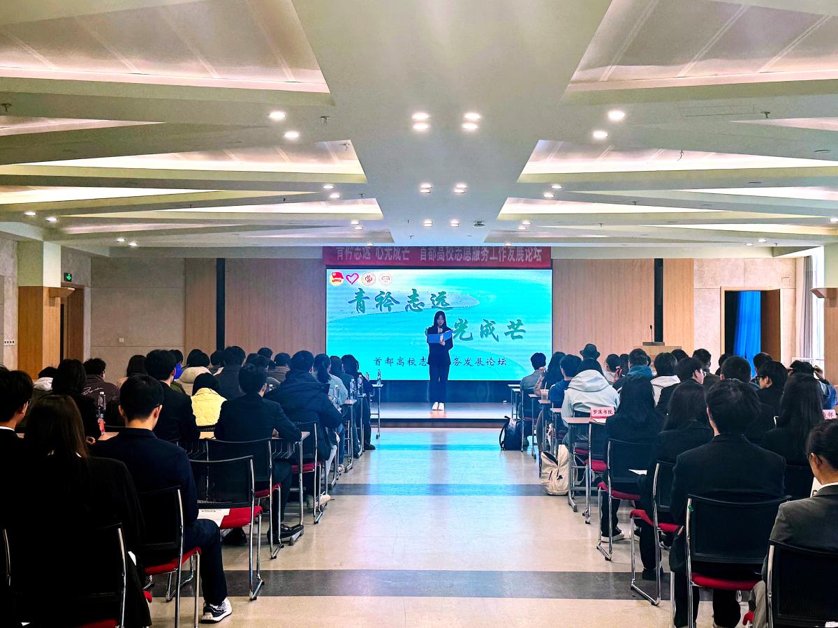 在志愿者文化周期間,學校青年志愿者協會還舉辦了“青衿志遠·心光成芒”2025年首都高校志愿服務工作發展論壇,來自北京大學、北京師范大學、中國農業大學、中國政法大學、北京林業大學等10所高校的志愿服務組織負責人,校院兩級青年志愿者協會骨干以及志愿者代表等近200人參加活動。活動中,各高校代表分享了志愿服務工作經驗成果,互學互鑒,并圍繞“品牌志愿服務項目建設”“志愿服務推廣宣傳”“志愿服務規范化管理”等11個議題交流研討。