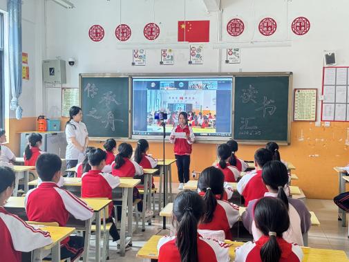 中石大第二十五屆研支團三位成員與自己所教的小學生們共同呈現了一臺生動的詩詞課堂。研支團隊長朱千瑞以《詠鵝》一詩講述了自己與詩詞的初識,以詩句“會當凌絕頂,一覽眾山小”為切入點,分享了自己最喜歡的古詩詞《望岳》。研支團成員羅壯認為讀詩詞可以觸摸歷史的溫度、可以涵養自身修養,詩詞文化既雕琢言行又雕琢心靈。研支團成員張家澤講述了詩詞帶給自己的啟迪與感悟,分享了詩詞在日常生活中的應用。
