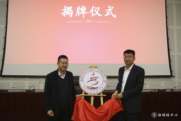 文永紅、李海青共同為“青馬工程”培訓(xùn)班LOGO揭幕。LOGO設(shè)計(jì)采用圖形與漢字相結(jié)合的方式,展現(xiàn)了“人”“馬”“青”的意蘊(yùn),“手”化用了流動(dòng)的油滴形狀展現(xiàn)學(xué)校特色,也蘊(yùn)含著托起青年成長的希望。