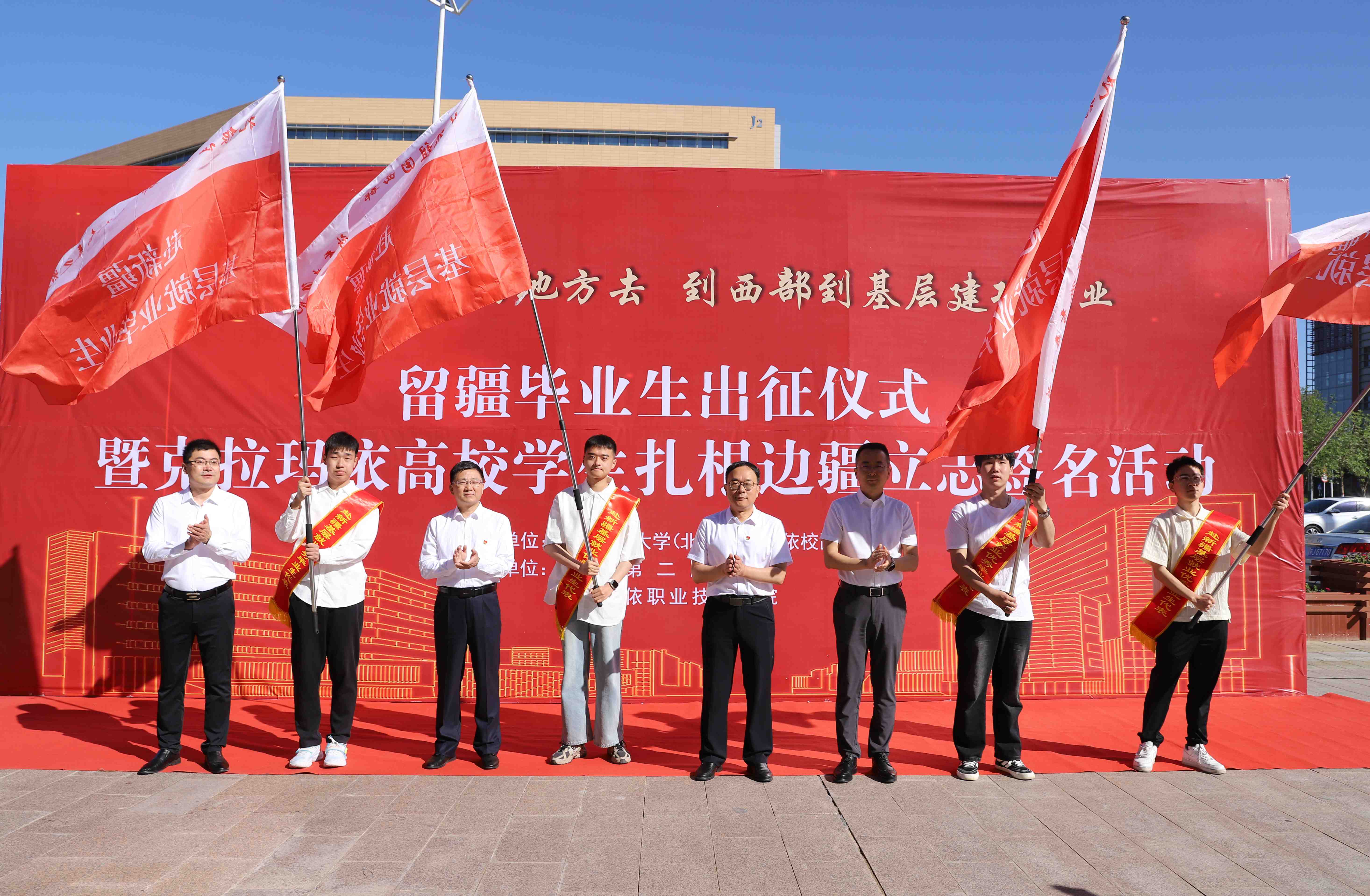 本次出征儀式共有克拉瑪依三所高校2024屆留疆就業畢業生及在校生代表200余人參與,旨在通過宣傳樹立典型,激勵三校青年學子樹立“志不求易者成,事不避難者進”的理想信念,到西部基層去建功立業,讓青春之花綻放在祖國最需要的地方。