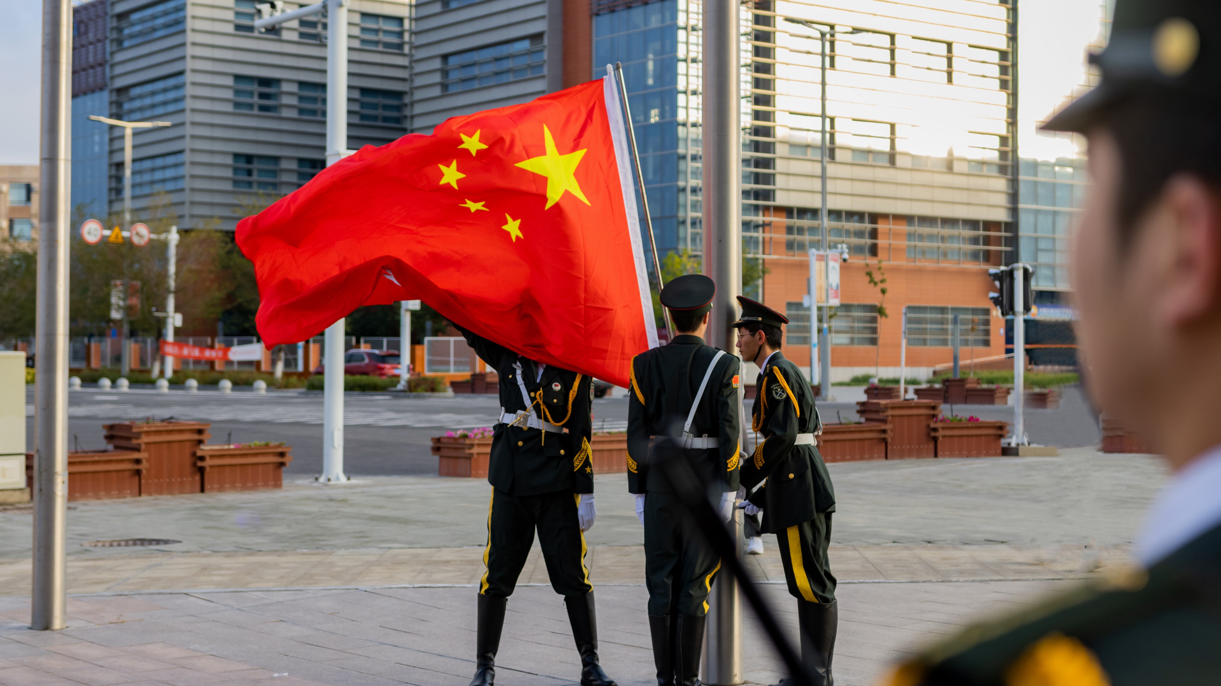 10月1日,伴隨著莊嚴的國歌聲,五星紅旗冉冉升起,現場師生代表高唱國歌,表達對偉大祖國的無限熱愛與熾熱真情。