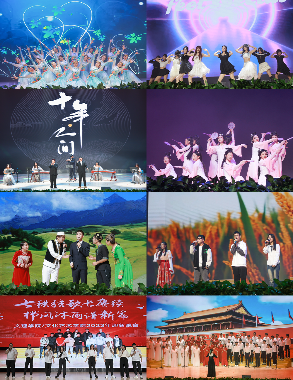 頒獎典禮在歌舞表演《舞動花季》中拉開序幕。在第一篇章《風華正茂》中,歌曲《到祖國最需要的地方去》表達了中石大學子的崇高理想和奮斗目標;舞蹈《青春舞曲》彰顯了青春活力。在第二篇章《青春有志》中,通過歌曲、舞蹈、相聲,展現了中石大人攻堅克難、勇毅前行的精神風貌,表達了各族兒女對新疆經濟快速發展、多彩新疆美如畫的由衷贊美。在第三篇章《后浪翻涌》中,朝氣蓬勃的樂器表演展現了無懼無畏的奮進精神;留學生演唱的《Ай, будет круто!(哦,這太棒了!)》表達了為構建中國-中亞命運共同體貢獻青春力量的志向;合唱團帶來的《在燦爛陽光下》,贊頌了新中國成立以來取得的偉大成就。晚會在全體觀眾合唱校歌《我為祖國獻石油》中落下帷幕。