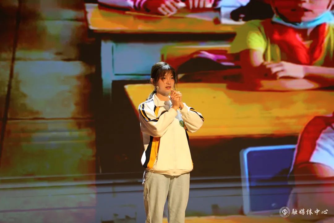 激昂的管弦樂合奏之后,來自各學(xué)院的青年師生以故事講述、情景再現(xiàn)、音樂舞蹈短劇等形式,分享了青春奮斗的故事。