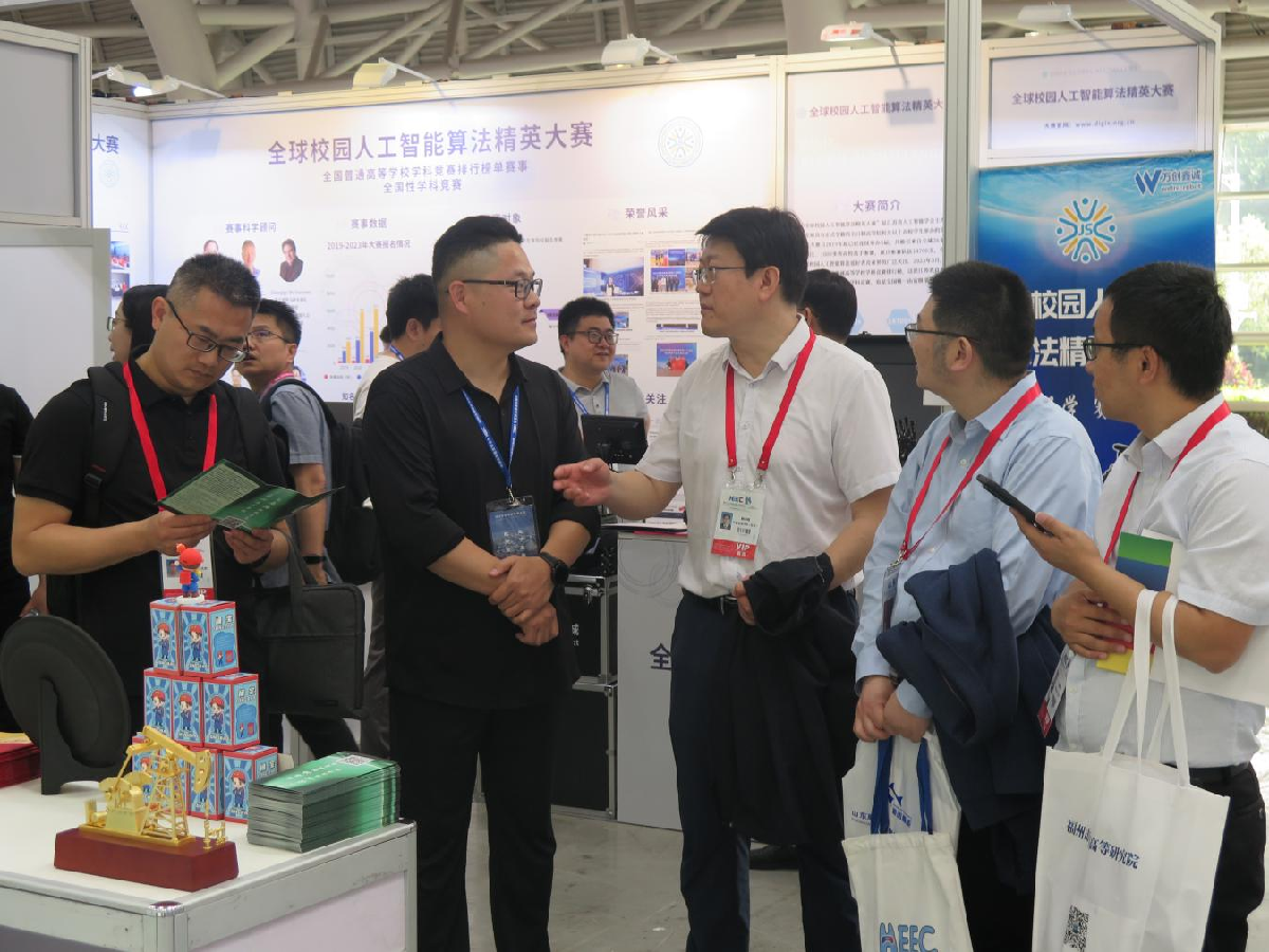 中國高等教育學會競賽評估與管理體系研究專家組成員趙春魚到展位調研指導,大賽組委會副秘書長劉東東向其介紹辦賽歷程、理念、成果、成效等方面情況,趙春魚表示充分肯定,同時對大賽辦賽機制、產教融合、對外交流、人才培養等方面進行了交流研討。