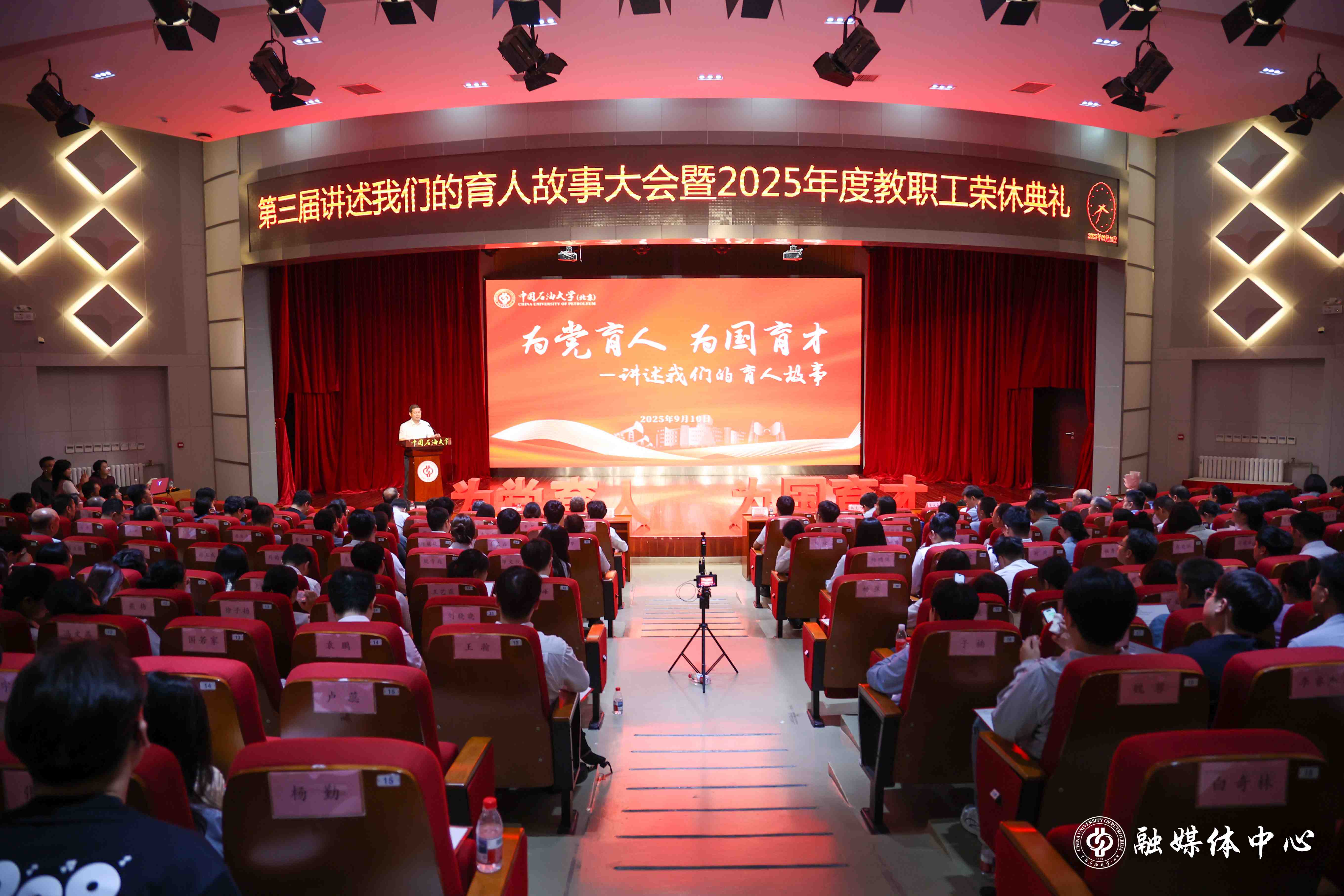 9月10日下午,中國石油大學(北京)在教工活動中心報告廳舉辦第三屆“為黨育人 為國育才”育人故事講述活動暨2025年度教職工榮休典禮,共同慶祝第41個教師節。學校黨委書記王同奇,校長金衍,黨委副書記、紀委書記韓克飛,副校長劉植昌,黨委副書記蒲俊霖,副校長黃磊,校本部機關及直屬單位負責人、各學院黨委書記、榮休教師代表、新入職教職工、青年師生代表等近300人現場參加,克拉瑪依校區設立分會場,干部和師生代表同步收看。