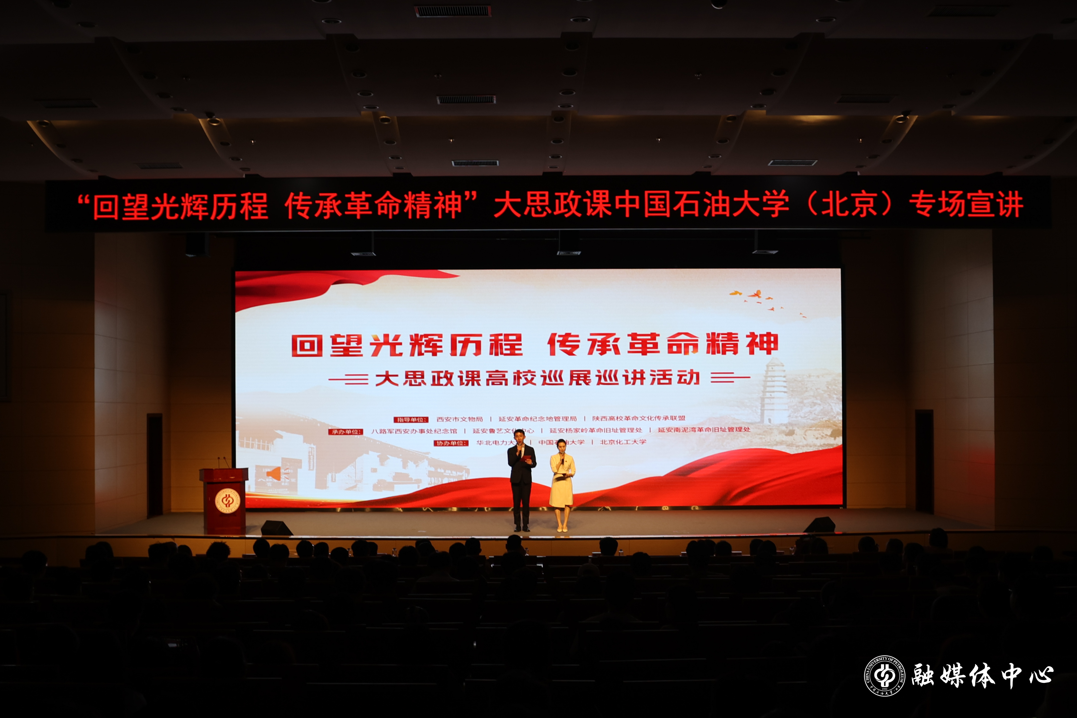 為進一步加強中國共產黨人精神譜系教育和革命傳統教育,充分發揮紅色資源育人功能,4月23日,中國石油大學(北京)組織近600名師生在中油大廈報告廳同上一堂“大思政課”,聆聽由八路軍西安辦事處紀念館聯合楊家嶺革命舊址管理處、延安魯藝文化中心、南泥灣革命舊址管理處等單位共同打造的“回望光輝歷程 傳承革命精神”主題宣講。