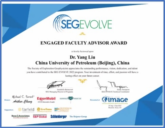10月28日,由國際勘探地球物理學家學會(SEG)主辦的第五屆SEG EVOLVE全球項目活動落幕。本次活動歷時10個月,共有來自中國、美國等8個國家的10個學生團隊參加,共評出優秀學生團隊獎2項、優秀指導教師獎3項。作為中國參與該活動的唯一團隊,中石大地球物理學院學生團隊獲評Hercules Award,學校劉洋教授獲Engaged Faculty Advisor Award。