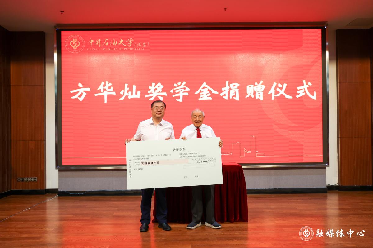 6月29日,方華燦教授95歲壽辰學術報告會暨獎學金捐贈儀式在翠宮報告廳舉行。學校副校長、教育基金會秘書長黃磊,原華東石油學院副院長、石油大學副校長、校務委員會副主任方華燦,中國工程院院士張來斌,學校相關職能部門和學院負責人、方華燦家屬、歷屆學生代表及學院師生代表共260余人參加活動。