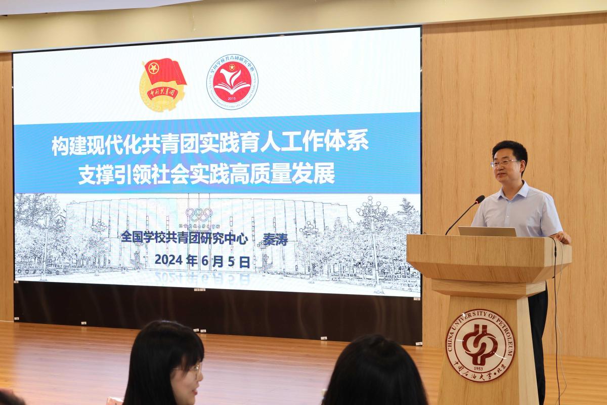 秦濤作了題為“構(gòu)建現(xiàn)代化共青團實踐育人工作體系 支撐引領(lǐng)社會實踐高質(zhì)量發(fā)展”的報告,結(jié)合現(xiàn)代化共青團實踐育人工作體系的構(gòu)建背景、特征、基本路徑三個方面,以及社會實踐工作體系的開發(fā)供給、宣傳動員、培訓(xùn)指導(dǎo)、過程管理和服務(wù)、成果考核、成果總結(jié)與轉(zhuǎn)化六個環(huán)節(jié),闡明了當(dāng)前開展社會實踐面臨的問題,并提出相應(yīng)建議。