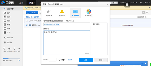 2)非文字類作品由于容量較大,可將作品于2015515日前上傳至百度網盤,分享鏈接到郵箱,具體分享操作步驟見附錄。