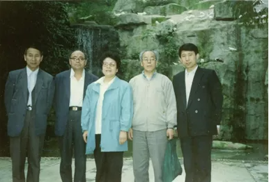 1993年3月,高德利陪同劉希圣教授(左二)、郎兆新教授(右二)、陳欽雷教授(左一)、張麗華教授(左三)赴南海調研合影