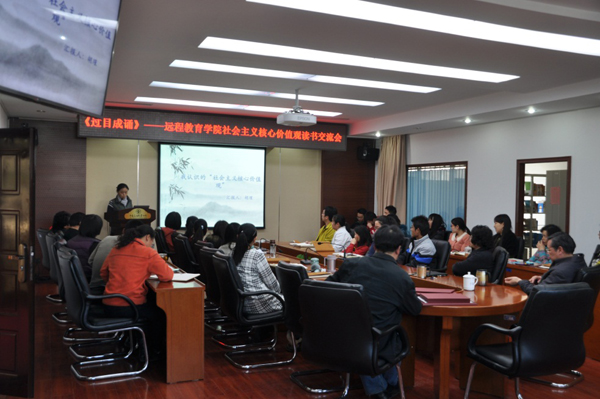 1月29日,遠程教育學院召開2014年先進集體和個人表彰大會,并舉行了社會主義核心價值觀讀書交流會。