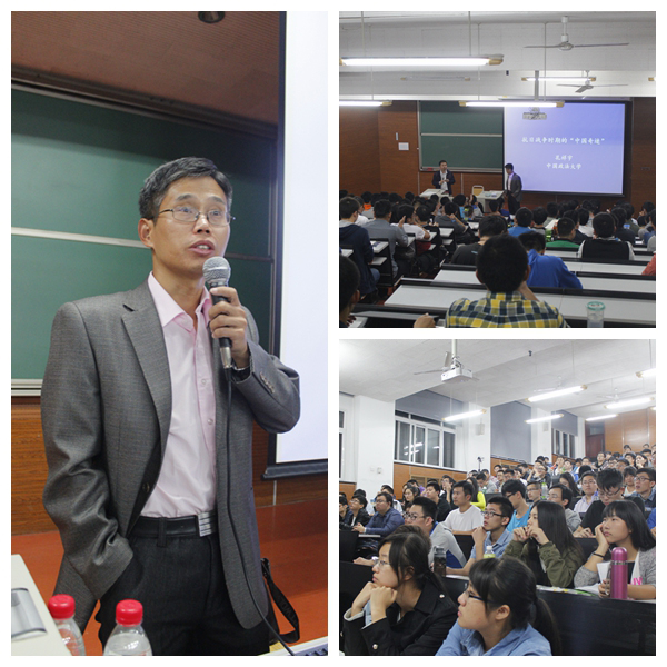 10月15日晚,學(xué)院邀請了中國政法大學(xué)馬克思主義學(xué)院中國近現(xiàn)代史研究所教授孔祥宇為學(xué)生黨員作了題為“抗日戰(zhàn)爭時期的中國奇跡”的學(xué)習(xí)輔導(dǎo)講座,180余名學(xué)生黨員聆聽了講座。講座中,孔祥宇利用從中國國家圖書館、斯坦福大學(xué)胡佛檔案館、東亞圖書館及韓國、日本等搜集到的抗戰(zhàn)時期珍稀資料,講述了“從一盤散沙到全民族抗戰(zhàn)”、“從實力懸殊到最后勝利”、“從雙半社會到中華民族復(fù)興”等抗日戰(zhàn)爭時期中國創(chuàng)造的三大奇跡。