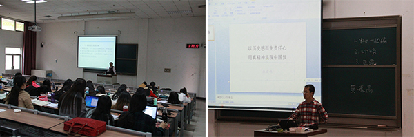 康建偉以“以歷史感而生責任心,用真精神實現中國夢”為題,講述了“黨的性質與宗旨”、“黨性的形成”及“黨性與人民性”,他鼓舞學生黨員做時代潮頭的新青年,學會在生活和學習中從新視角觀察、思考問題,加強黨性修養,響應時代要求,擔當歷史責任。吳建偉以“堅定道路自信,邁向民族復興”為題,闡釋了何為道路自信,分析了中國特色社會主義道路的優越性,引導學生黨員樹立理想,牢固信念,為高尚而偉大的事業奮斗,從而實現在思想上真正入黨。孔翔宇以漫畫和蔣介石日記等文獻資料來漫談抗戰,別開生面地展示了抗戰的發展歷程,并揭示了抗戰勝利對中華民族偉大復興的意義。