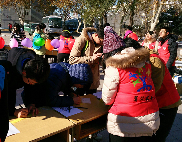 11月26日,石大地球科學(xué)學(xué)院蒲公英青協(xié)在南廣場(chǎng)舉辦“感恩之心,愛的分貝”大型感恩活動(dòng),石大近千名師生參加活動(dòng)。