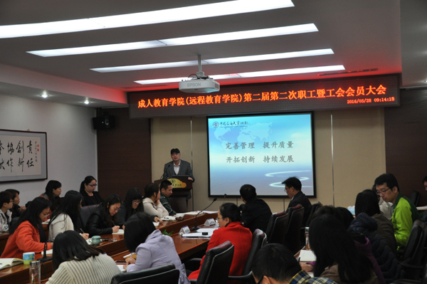 3月28日,成人教育學院(遠程教育學院)召開第二屆第二次職工暨工會會員大會。