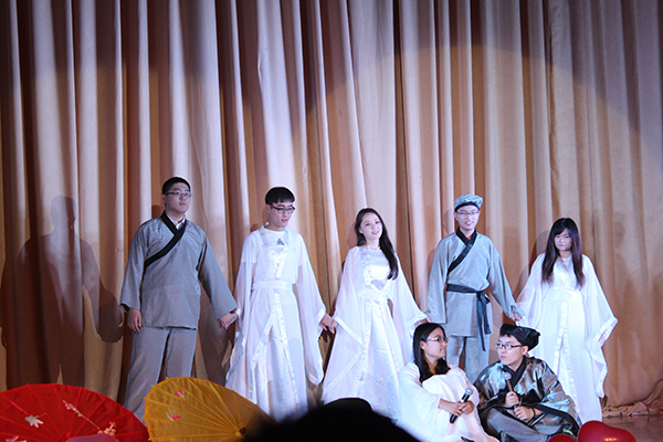 開場舞《怦然心動》拉開了晚會序幕,隨后歌舞、話劇、武術、樂器聯奏等節目為觀眾呈現了一場視聽盛宴。信息研15-3班歌曲串燒編排巧妙,優美動聽;舞蹈《knock》充滿活力;武術《雙節棍》展現了男兒的豪邁氣概;二胡《賽馬》琴聲悠揚;話劇《青春記憶》情感真摯,細膩感人。游戲環節驚喜連連,歡笑不斷。晚會在信息研15-1班大合唱《我的中國心》歌聲中落下帷幕。