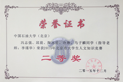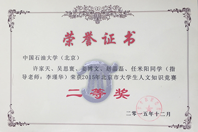 石大學(xué)子在北京市第七屆大學(xué)生人文知識競賽中榮獲兩項二等獎