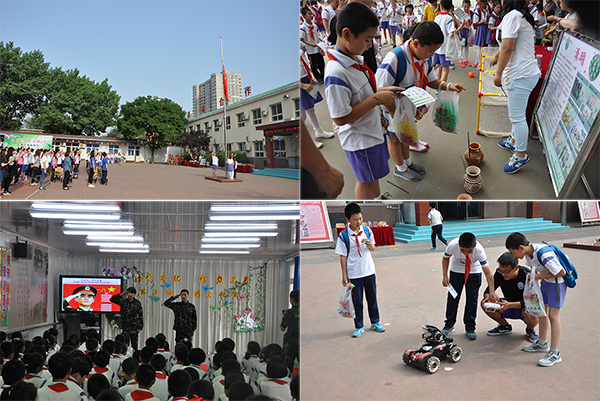 活動在莊嚴的升旗儀式中拉開序幕。在二十四節氣主題游園環節,黨支部成員被分為12個小隊,擔當游園活動導游,負責每個班級學生的組織與安全引導工作。游園活動包括節氣拼圖、吃春卷、系紅繩、喝綠豆粥、折紙扇等形式,帶領小學生們感受中國傳統節氣文化。在匯報表演環節,黨支部攜機械軍旅協會、陶笛社、機器人協會為小學生們帶來了退伍軍人軍禮拳表演、陶笛表演、吉他表演、機器人表演等節目,贏得了東關小學師生們的贊揚與好評。