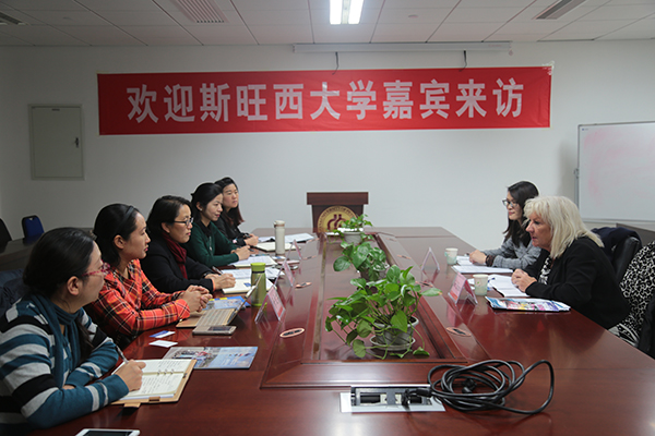11月1日,斯旺西大學(xué)(Swansea University)人文學(xué)院負(fù)責(zé)市場(chǎng)、招生錄取和國(guó)際項(xiàng)目的負(fù)責(zé)人Bev Evans、和該校北京代表處負(fù)責(zé)人張蕾來(lái)訪石大外國(guó)語(yǔ)學(xué)院,外國(guó)語(yǔ)學(xué)院院長(zhǎng)趙秀鳳、英語(yǔ)系主任唐建南、MTI教育中心主任修文喬等接待了Bev Evans一行。
