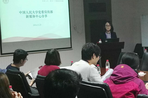 會上,石大官微團隊、“地心引力”團隊分別對各自平臺建設情況進行了介紹,分析了新媒體建設的優勢和經驗,提出了建設中存在的問題和困惑。中國人民大學黨委宣傳部姚思宇對人大官微平臺進行了詳細介紹,并從平臺自身優勢、內容設計、高校新媒體平臺建設的困難等方面入手,對比分析了各平臺的優勢與不足,分享了建設和運行高校官方微信公眾號的經驗。各團隊還就優質推送制作周期、運營團隊建設、平臺版式設計等問題進行了深入交流,相互學習,取長補短。通過交流,各團隊對運營微信公眾平臺有了新的認識、啟發了下一步的工作思路,對更好地建設微信公眾平臺,充分發揮網絡新媒體的育人作用具有積極影響。