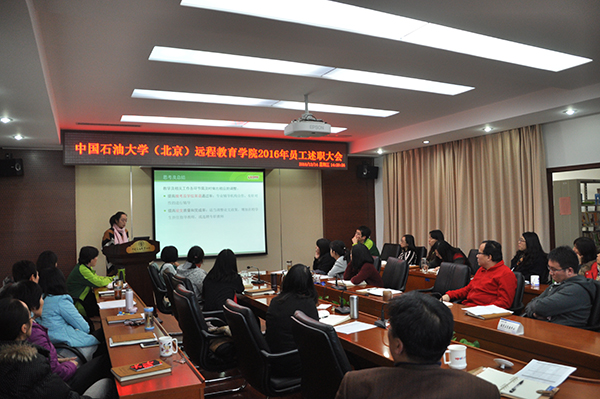 12月14日和15日,石大成人、遠程教育學院召開年終全員述職和形勢教育大會。全體員工總結回顧了自身2016年的工作,匯報了在工作中取得的成績,反思工作中存在的問題,提出了今后的改進方向。