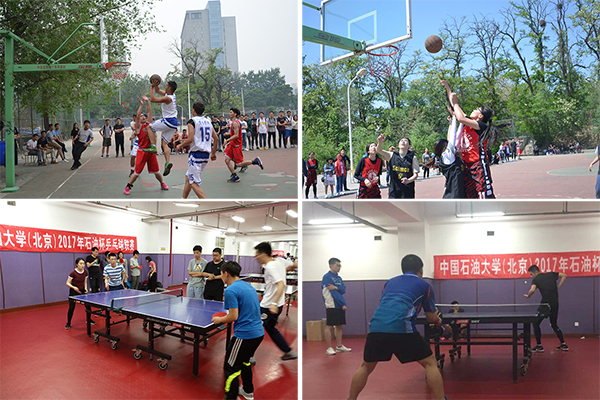近日,石大舉辦了2017年“石油杯”籃球聯賽和乒乓球聯賽。來自9個學院的男、女籃共25支隊伍進行了56場的籃球比賽;乒乓球聯賽也吸引了來自各學院、各年級的學生積極參加,比賽分男女子單打和團體賽。