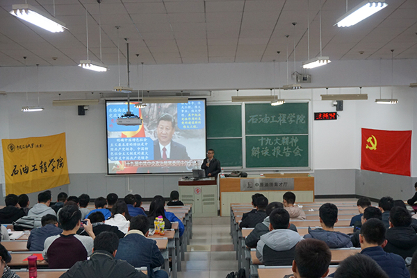 近日,石大石油工程學院學生黨員學習黨的十九大精神熱情持續(xù)升溫,學院組織學生黨員開展了分形式、分層次、全覆蓋的學習,引導青年學子深入領(lǐng)會十九大精神特別是習近平新時代中國特色社會主義思想的核心要義和精髓,進一步堅定他們?yōu)閷崿F(xiàn)中華民族偉大復興中國夢不懈奮斗的理想信念。