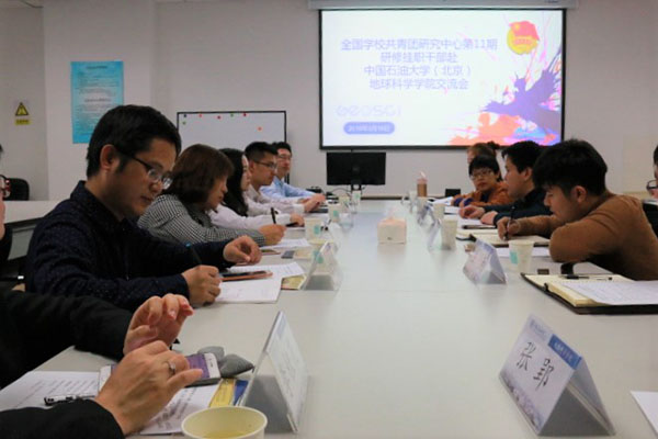 3月17日,來自東北大學、濟南大學、東莞南城中學等學校的全國學校共青團研究中心第十一期研修掛職干部到石大進行共青團工作交流,石大團委書記周玉成、地球科學學院黨委副書記周學智以及地球科學學院相關團學工作干部參加了交流會。