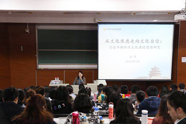 3月25日上午,石大工商管理學院舉辦了高水平人文素質(zhì)講座,北京市委黨校副教授童萍應(yīng)邀作了題為“從文化焦慮走向文化自信:習近平新時代中國特色社會主義文化思想研究”的報告,近150名黨員和入黨積極分子聆聽了報告。