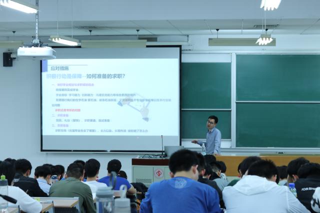 講座中,朱義清結合真實案例,深入講解了當前大學生的就業形勢政策以及學校就業基本情況,并將學校目前整體就業形勢進行了歸納總結;針對學生在就業、創業過程中存在的問題,提出了“觀念轉變是先導、樂觀對待是上策、積極行動是保障”的應對措施。
