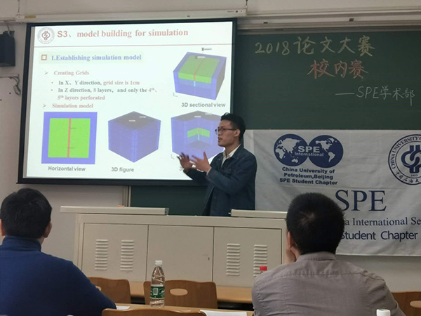 比賽共收到稿件近30篇,共選出9名選手進入決賽。石油工程學院學院于海洋副教授、陳冬副教授擔任比賽評委。決賽采用全英文答辯形式,每位選手精心制作了PPT,現場進行了精彩演講,回答了評委的提問。評委對選手的文章及現場表現進行了認真點評,提出了寶貴意見,并與現場同學分享了自己的科研經驗以及人生感悟,期待選手們再接再厲,完善自我,努力學習,更好地提升自己。