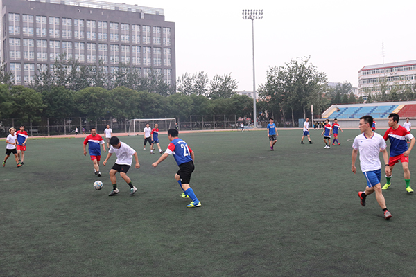 比賽前,科學技術研究院黨委書記劉韻秋作了賽前動員,鼓勵師生全力比賽,展現(xiàn)良好的精神面貌、積極的生活態(tài)度、高尚的運動精神,祝福2018屆畢業(yè)生在今后的學習、工作和生活中前程似錦。比賽中,上半場學生代表隊通過積極跑動和快速反應,先下一城。下半場教師代表隊默契的配合,在常規(guī)比賽時間內(nèi)與學生代表隊3:3戰(zhàn)平。在隨后的點球大戰(zhàn)中,教師代表隊憑借穩(wěn)健的發(fā)揮,以8:6的比分獲勝。