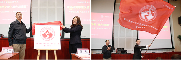 儀式上,機械學院黨委書記李光和、黨委副書記海鳳共同為“星火訓練營”揭牌,李光和為“星火訓練營”營長、機械學院團委書記劉曄授營旗,全體學員在輔導員代表的領誓中重溫入團誓詞。